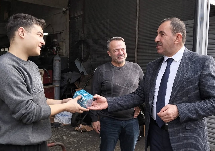 İlçe Müftüsü Mehmet Seven ve Gençlik Koordinatörlüğü ekibi, çeşitli iş yerlerinde görev yapan gençleri ziyaret ederek Ramazan aylarını tebrik etti.
