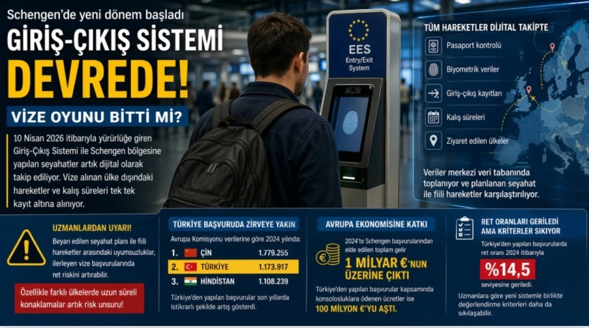 10 Nisan 2026 itibarıyla aktif hale gelen sistemle birlikte yolcuların sadece giriş-çıkışları değil, hangi ülkede ne kadar kaldıkları da kayıt altına alınıyor. Avrupa Komisyonu verilerine göre, yeni sistem merkezi veri tabanı üzerinden çalışıyor ve tüm hareketler entegre şekilde analiz ediliyor.