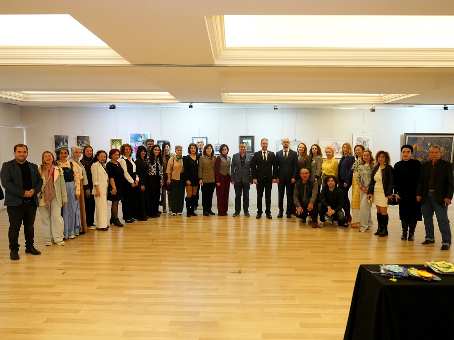 10 ülkeden 38 sanatçının eserlerinin yer aldığı sergide farklı teknik ve tarzlarda hazırlanmış resim çalışmaları ile el sanatları ürünleri beğeniye sunuldu.