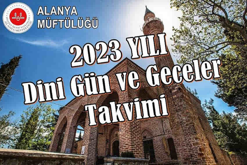 Alanya Müftülüğü 2023 Yılı Dini Gün ve Geceler Takvimini yayınladı. Alanya Müftülüğü'nün yayınladığı takvime göre, içinde Recep, Şaban ve Ramazan aylarının bulunduğu Üç Aylar, 23 Ocak 2023 Pazartesi günü başlayacak.