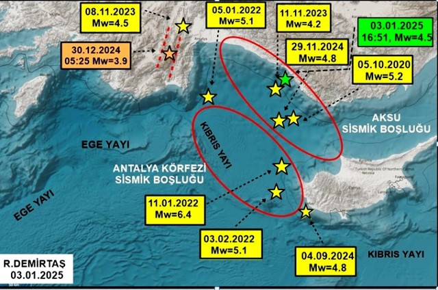 “Alanya’daki 4.5 büyüklüğündeki deprem, Helen-Kıbrıs Dalma-Batma Zonu üzerinde meydana geldi. Dünyanın en büyük depremleri bu tür zonlarda oluşuyor. Zemin çürük, fay hatları yoğun ve büyük depremler bu bölgeyi etkileyebilir.”