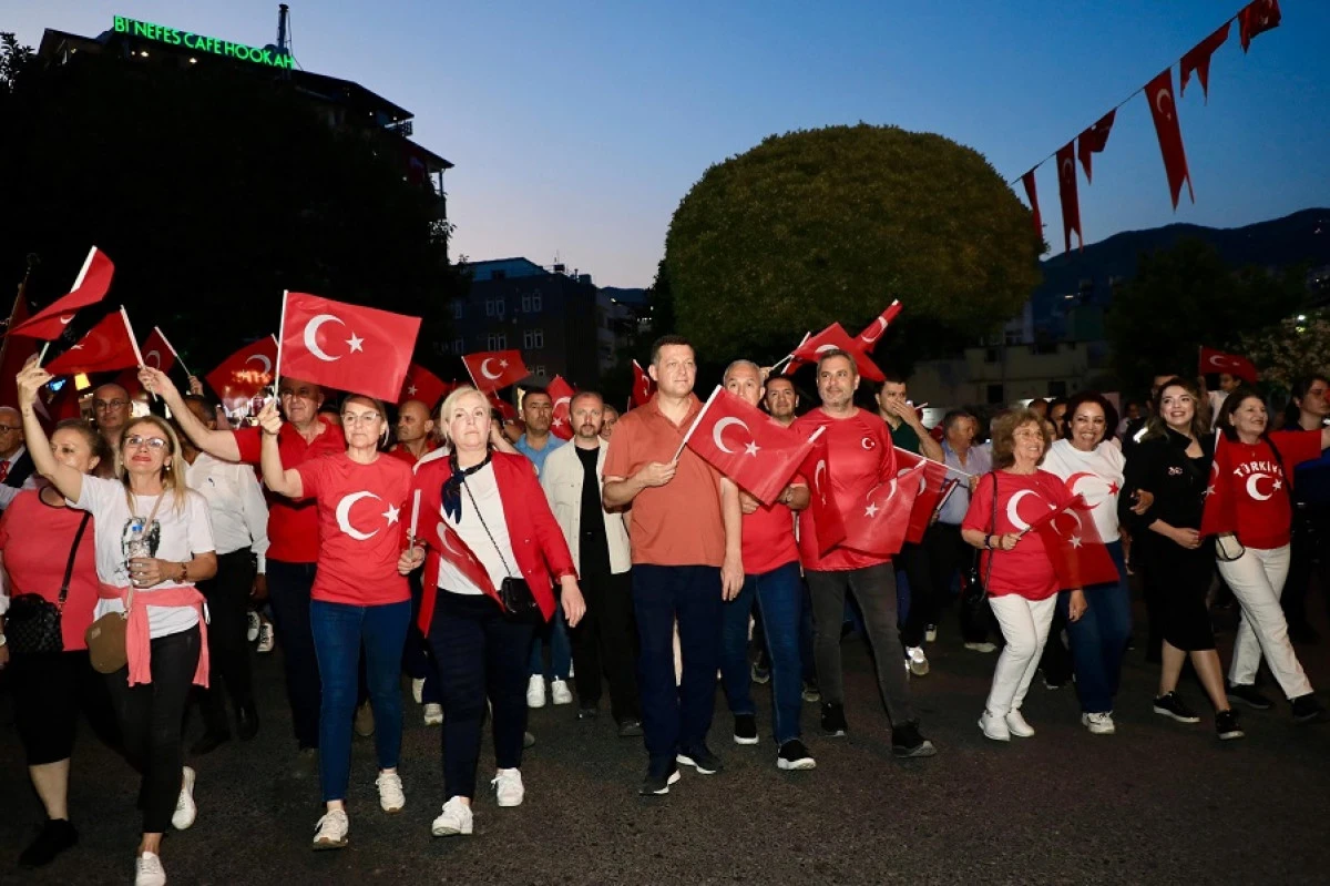 Yürüyüşe, Alanya Kaymakamı Dr. Fatih Ürkmezer, Alanya Belediye Başkanı Alanya Kent Konseyi Başkanı Nurhan Özcan, kurum amirleri, siyasi parti temsilcileri, sivil toplum kuruluşları, gençler ve vatandaşlar yoğun ilgi gösterdi. Ellerinde ay yıldızlı Türk bayrakları taşıyan coşkulu kalabalık, hep bir ağızdan marşlar söyleyerek Alanya sokaklarını adeta kırmızı beyaza boyadı.