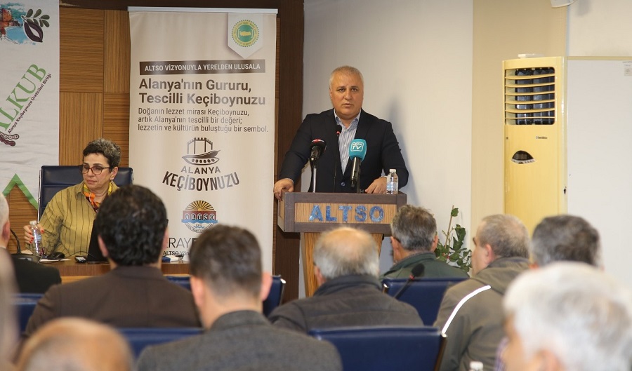 Alanya Keçiboynuzu Üreticileri Birliği Başkanı Duran Yılmaz, keçiboynuzunun coğrafi işaret sürecinde ALTSO’nun büyük katkı sağladığını belirterek Başkan Eray Erdem’e teşekkür etti. Yılmaz ayrıca üretim süreci ve ürünün kullanım alanları hakkında bilgi verdi.