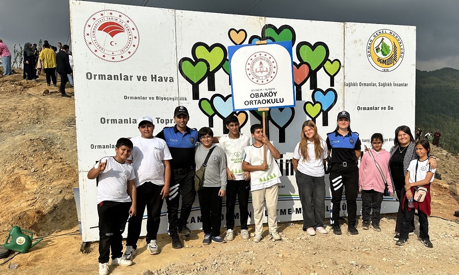 Bölgede bulunan okullardan etkinliğe katılan öğrenciler, 2025 yılı içinde Alanya’nın Asmaca Mahallesi’nde meydana gelen orman yangınında yok olan ağaçların yerine fidan dikerek doğaya yeniden hayat vermenin mutluluğunu yaşadı.