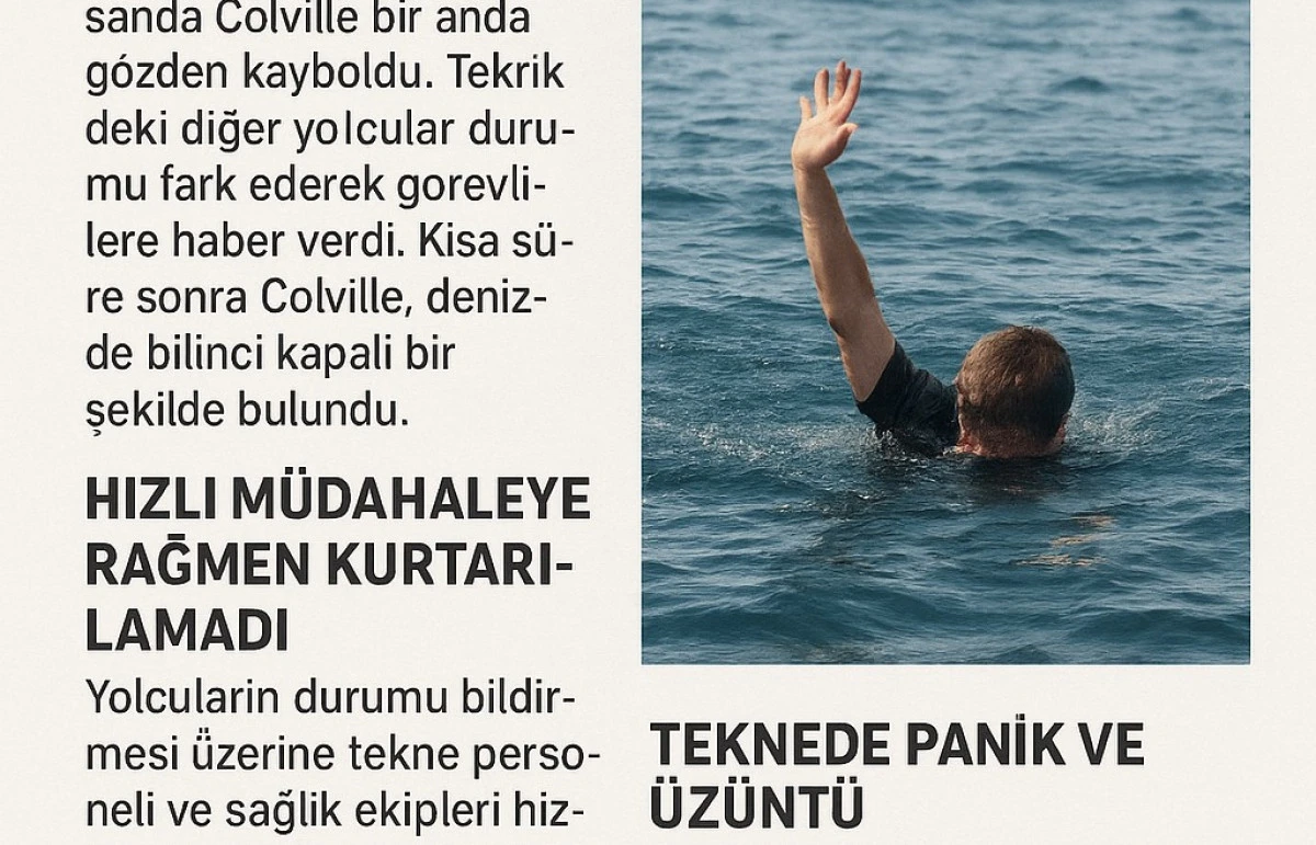Olay üzerine tekne personeli ve bölgedeki sağlık ekipleri hızla müdahale etti. Ambulans çağrıldı ve denizden çıkarılan Colville’e olay yerinde ilk müdahale yapıldı. Ancak tüm çabalara rağmen turist kurtarılamadı.