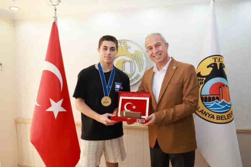 Dünya Şampiyonu olan Corendon Alanyaspor Esktrim Takımı'nın milli sporcusu Doruk Erolçevik, Alanya Belediye Başkanı Osman Tarık Özçelik'i makamında ziyaret etti.