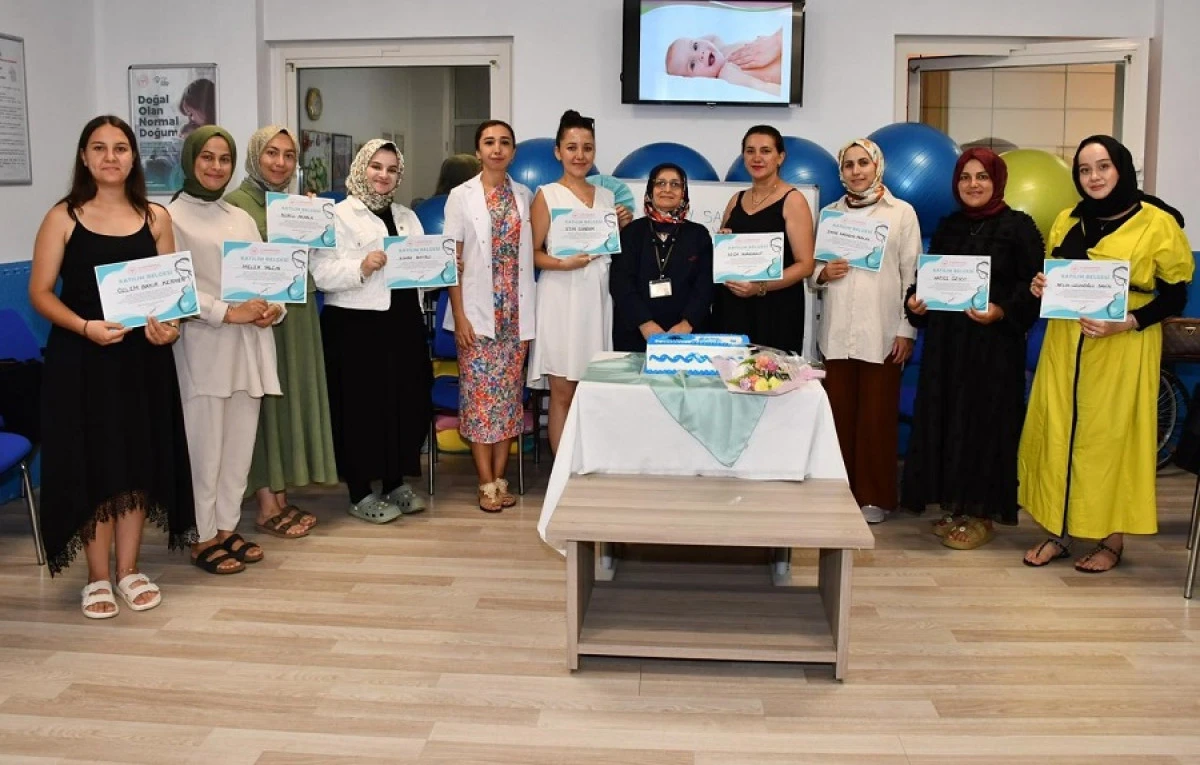 Gebe Okulu’nda 4 hafta süren teorik ve uygulamalı eğitimlerini başarıyla tamamlayan 13 anne adayına düzenlenen törenle katılım belgeleri takdim edildi.