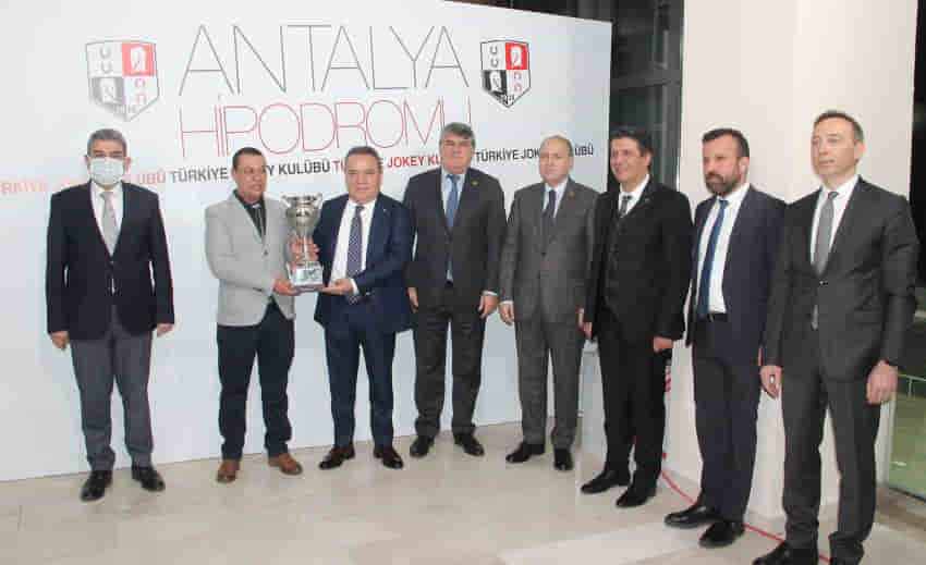 Şeref Tribünü’nde düzenlenen törende Belediye Başkanı Turgay Genç, safkanın jokeyi Mehmet Akyavuz’a da bir plaket takdim etti. Başkan Genç, “Yarışı kazanan jokeyi tebrik ediyorum. Kaza geçiren jokeye ise geçmiş olsun dileklerimi iletiyorum” dedi. Antalya Büyükşehir Belediye Başkanı Muhittin Böcek, Kulüp Başkanı Serdal Adalı, Genel Sekreter Ahmet Özbelge ve Genel Müdür Tuncel Aydın da katıldı.