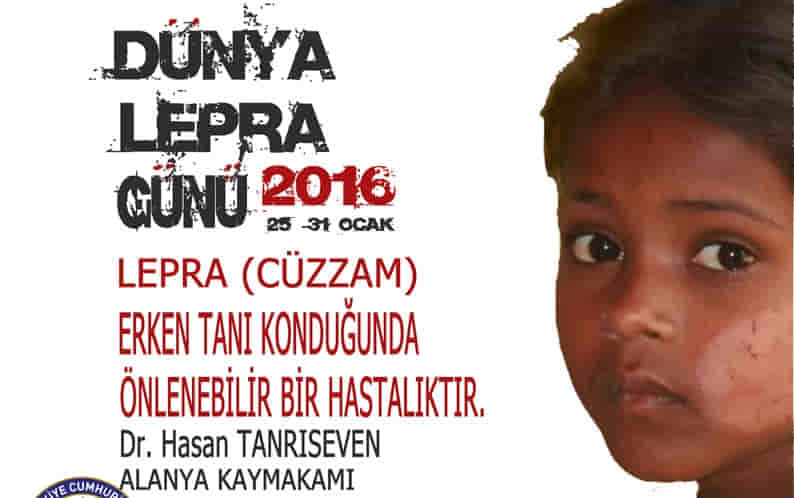 Alanya Kaymakamlığı Toplum Sağlığı Merkezi, 25 – 30 Ocak Tarihleri arasında kutlanan “Dünya Cüzzam Günü” ile ilgili basın duyurusu yayınladı.