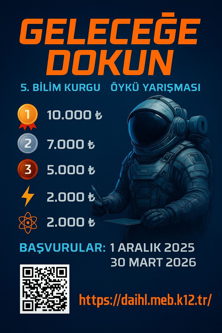 Okul yönetimi, yarışmanın her yıl daha büyük ilgi gördüğünü ve özellikle bilim kurgu türüne yönelen genç yazarlar için motive edici bir fırsat sunduğunu belirtiyor. ÖDÜLLER REKOR KATILIM BEKLENTİSİ YARATTI Bu yıl yarışma ödülleri dikkate değer şekilde artırıldı. Ödül skalasının genişliği, hem öğrencileri teşvik ediyor hem de yarışmanın prestijini yükseltiyor. Açıklanan ödüller şöyle: 1.'lik Ödülü: 10.000 TL 2.'lik Ödülü: 7.000 TL 3.'lük Ödülü: 5.000 TL Işık Hızı Ödülü: 2.000 TL Proton Ödülü: 2.000 TL Özellikle “Işık Hızı” ve “Proton” özel ödülleri, yarışmada özgün kurgu ve yaratıcı fikirleri ön plana çıkaran çalışmalar için verilecek. KATILIM KOŞULLARI VE BAŞVURU TARİHLERİ Yarışma; bilim kurgu türünde özgün bir öykü yazmak isteyen tüm lise öğrencilerine açık olacak. Katılımcılar öykülerini elektronik ortamda teslim edecek. Öykülerin daha önce yayımlanmamış olması ve tamamen öğrenci tarafından kaleme alınması şartı aranıyor. Başvurular 1 Aralık 2025 – 30 Mart 2026 tarihleri arasında alınacak. Dereceye giren öğrenciler için ödül töreninin ise Nisan ayında yapılması planlanıyor. GENÇLERİN GELECEĞE BAKIŞI DESTEKLENİYOR Okul yetkilileri, yarışmanın amacının sadece ödül dağıtmak değil, gençlerin teknoloji, uzay, yapay zekâ, sürdürülebilirlik ve insanlığın geleceği gibi alanlarda düşünmesini sağlamak olduğunu vurguluyor. Projenin, öğrenciler arasında bilimsel farkındalık yaratması bakımından büyük önem taşıdığı ifade ediliyor.