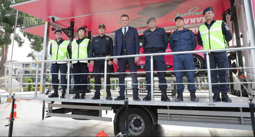 Alanya Kaymakamı Dr. Fatih Ürkmezer Emniyet Kemerinin önemini Simülasyon aracı ile anlattı.