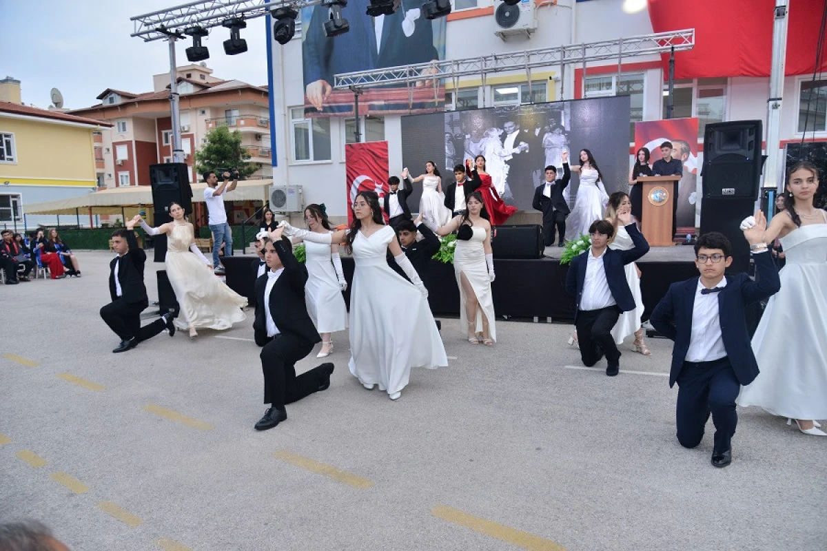 Törenin başında sahne alan okulun vals grubu, sergiledikleri zarif gösteriyle büyük beğeni topladı. Öğrencilerin arkasında yer alan Ulu Önder Mustafa Kemal Atatürk’ün vals yaparken çekilmiş fotoğrafı, izleyicilerden alkış aldı. Atatürk’ün izinden yürüyen gençleri sahnede görmek, törende duygusal anların yaşanmasına neden oldu.