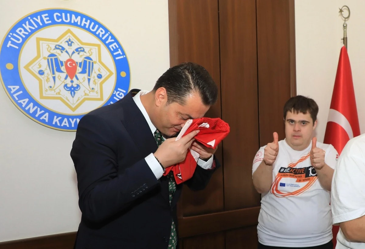 Özel sporcularımız, şanlı Türk bayrağını Kaymakam Öztürk’e sunarak Cumhuriyet Bayramı’nı coşkuyla kutladı.
