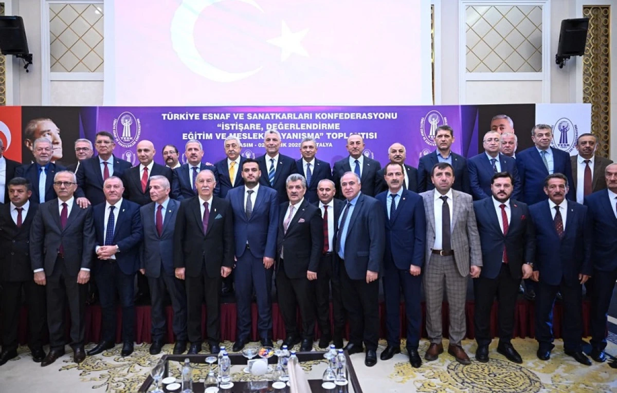 İSTİŞARE VE DAYANIŞMA TOPLANTISI GERÇEKLEŞTİRİLDİ Türkiye Esnaf ve Sanatkârları Konfederasyonu (TESK) tarafından düzenlenen İstişare, Değerlendirme, Eğitim ve Mesleki Dayanışma Toplantısı, Serik ilçesi Belek bölgesinde yapıldı. Programa Ticaret Bakanı Prof. Dr. Ömer Bolat, Antalya Valisi Hulusi Şahin, Antalya Milletvekili Mevlüt Çavuşoğlu, TESK Başkanı Bendevi Palandöken, TESK Genel Başkan Vekili ve AESOB Başkanı Adlıhan Dere’nin yanı sıra siyasi parti temsilcileri, esnaf başkanları ve esnaf odaları üyeleri katıldı.