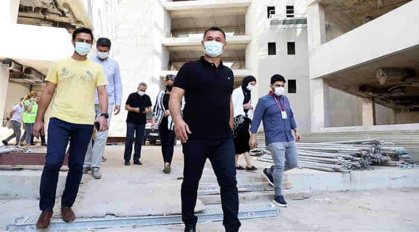 Sıhhi tesisat, mekanik tesisat, cam cephe ve sinterflex ankrajları, mermer, granit, traverten, şap, sıva, izolasyon gibi çalışmaların tamamlandığını; havalandırma, klima drenaj, ağır çelik kaplama, kuvvetli akım ve kablolama, asma tavan ve zayıf akım çalışmalarının devam ettiğini belirten Başkan Yücel, son rötuşların yapıldığını ifade etti.
