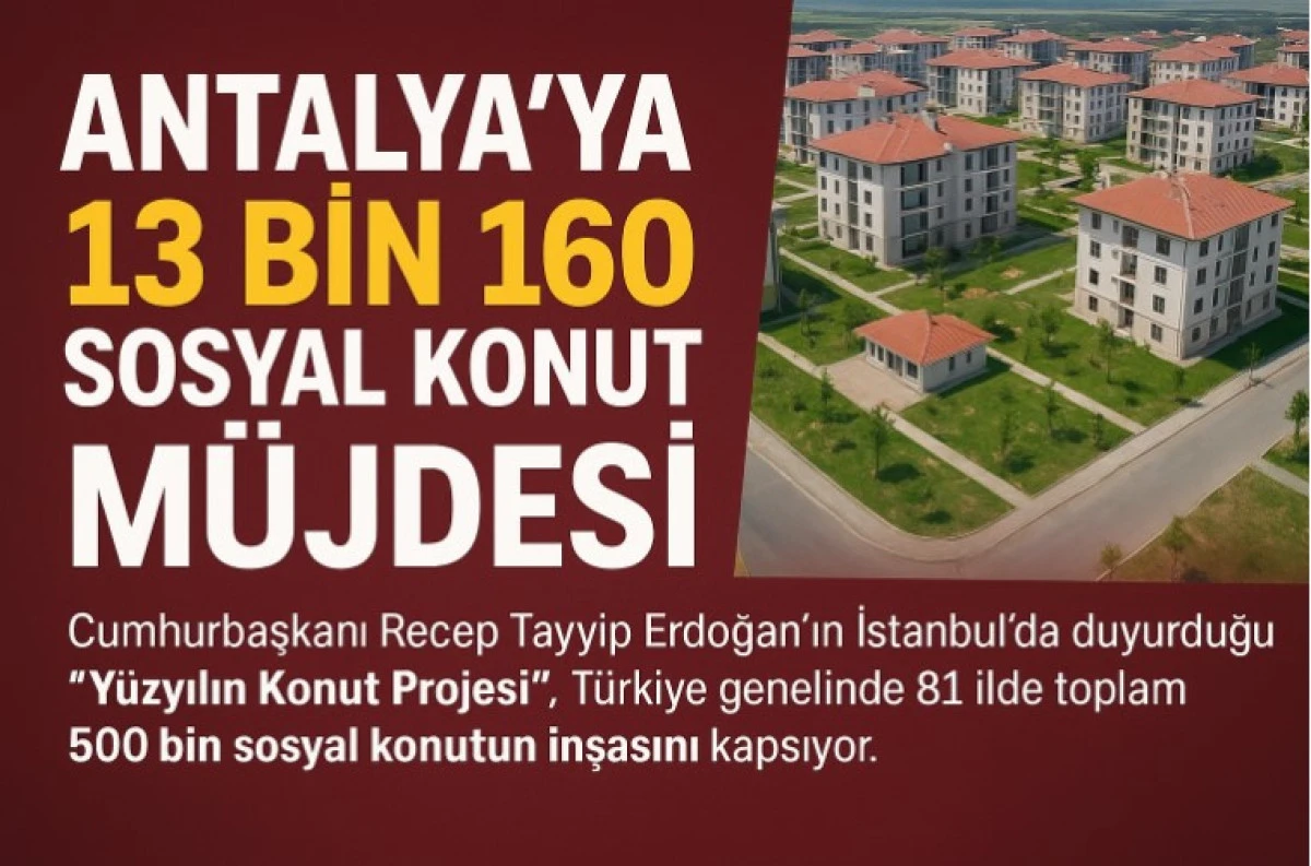 Cumhurbaşkanı Recep Tayyip Erdoğan’ın İstanbul’da duyurduğu “Yüzyılın Konut Projesi”, Türkiye genelinde 81 ilde toplam 500 bin sosyal konutun inşasını kapsıyor. Proje, dar gelirli vatandaşlara uzun vadeli ödeme kolaylığıyla ev sahibi olma imkânı sunacak.